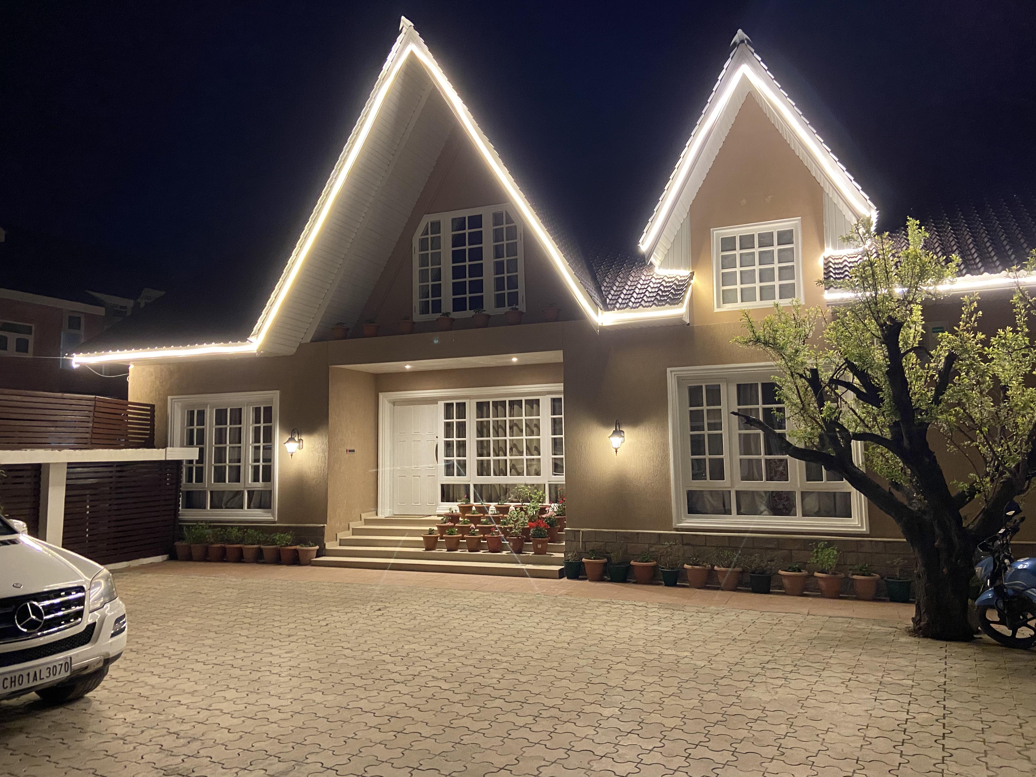 Rooms in a villa featuring a living room, BBQ, lawn & parking