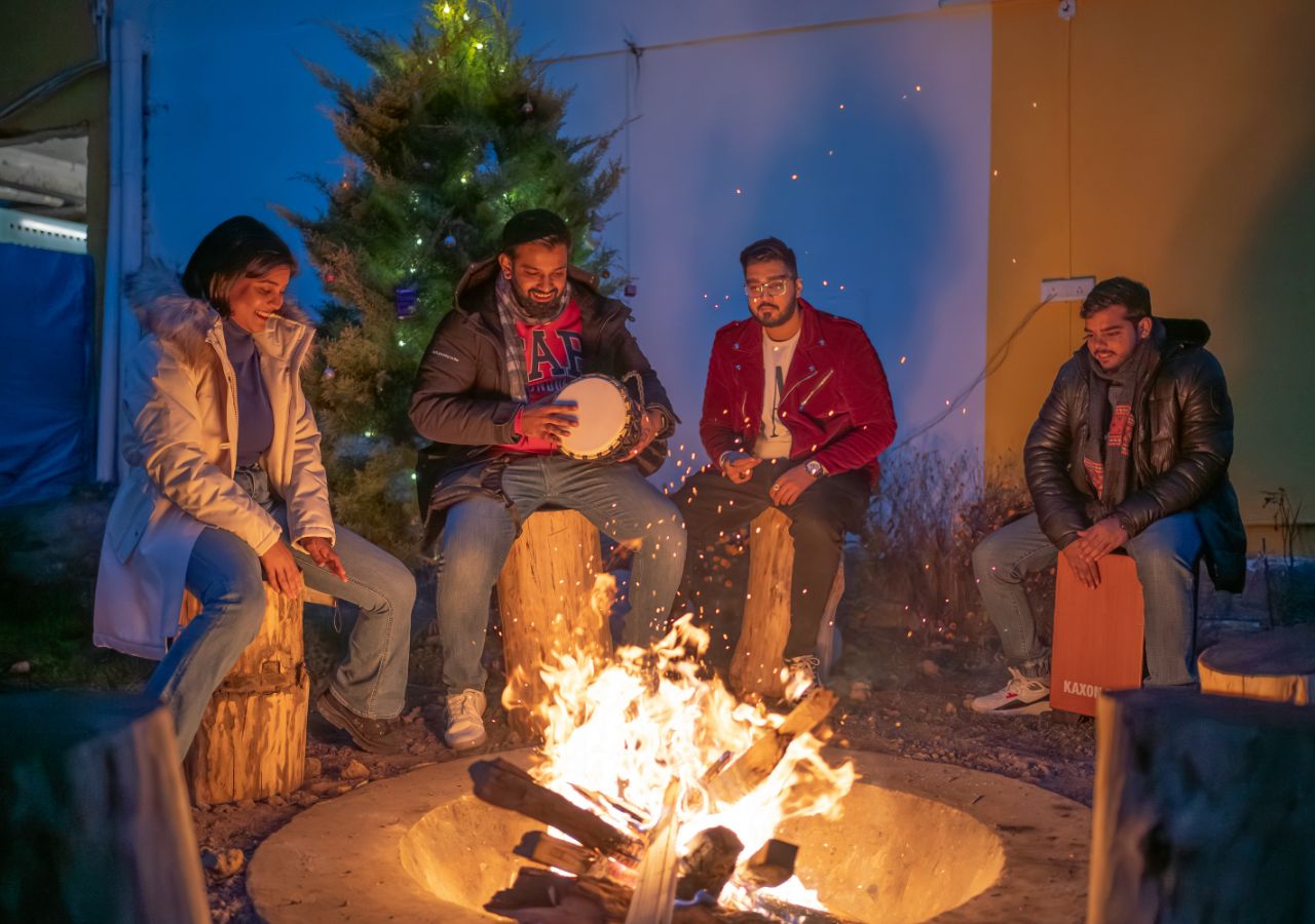 Discover scenic Old Manali at this lodge-like hostel featuring a rustic café, a gazebo with valley views, & a bonfire. More