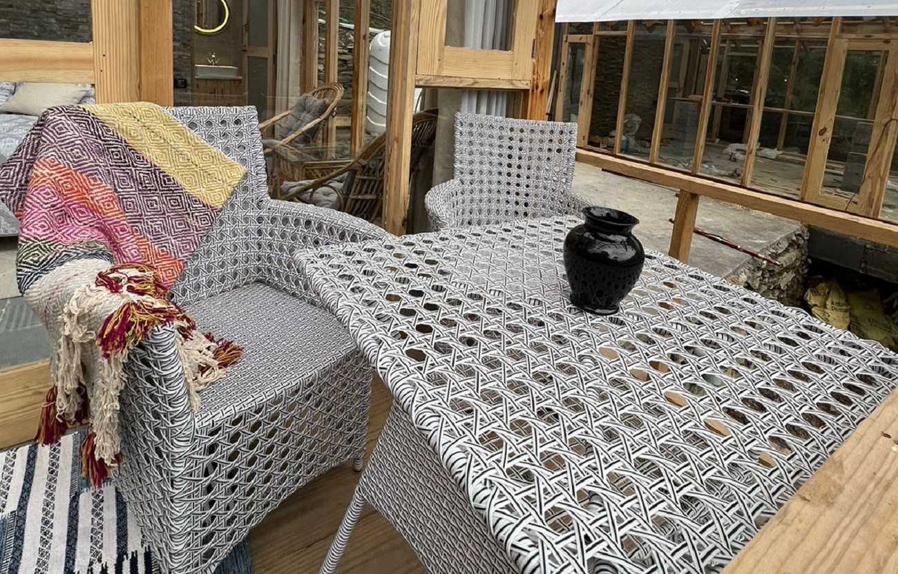Admire this unique chalet with glass ceilings & views of the Parvati Valley