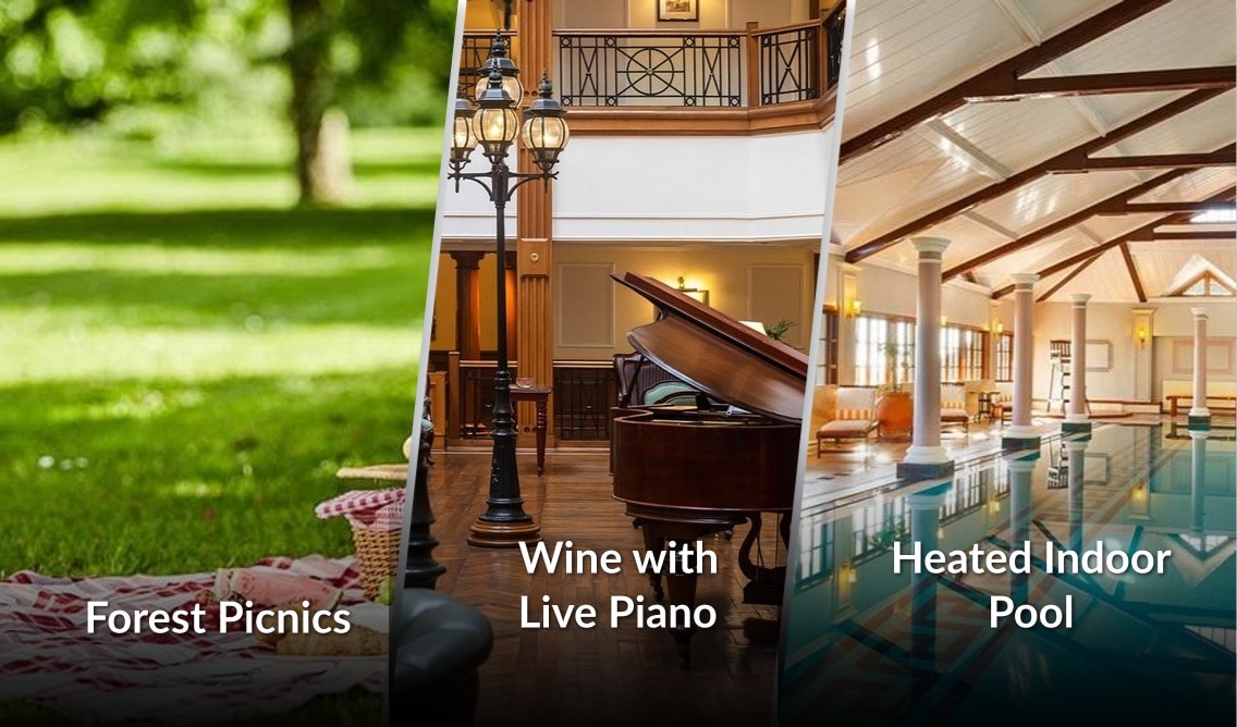 Stay at a heritage property with glowing fireplaces and rich wooden floors and enjoy views of majestic mountains. More