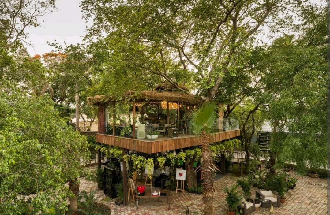 Have a pleasant break from the mundane, wake up to the chirping of birds and stay in a treehouse lovingly created amidst three neem trees. More