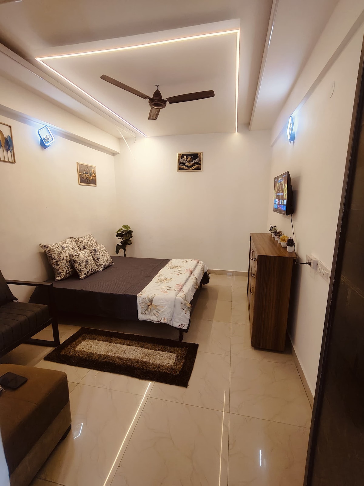 Enjoy a comfortable stay in our well-furnished entire apartment featuring 2 bedrooms, 2 attached washrooms, a private kitchen, b ...Read moreLogin to unlock deals & manage your bookings!