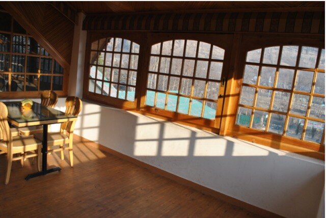 Located next to the river rafting point, the resort is in Pahalgam surrounded by greenery and majestic mountains.