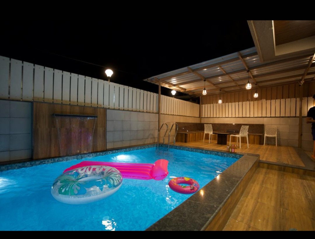 This villa is in Tungarli, Lonavala, next to Shree Narayani Dham Mandirwith a private swimming pool and a beautiful hill view.It ...Read moreLogin to unlock deals & manage your bookings!