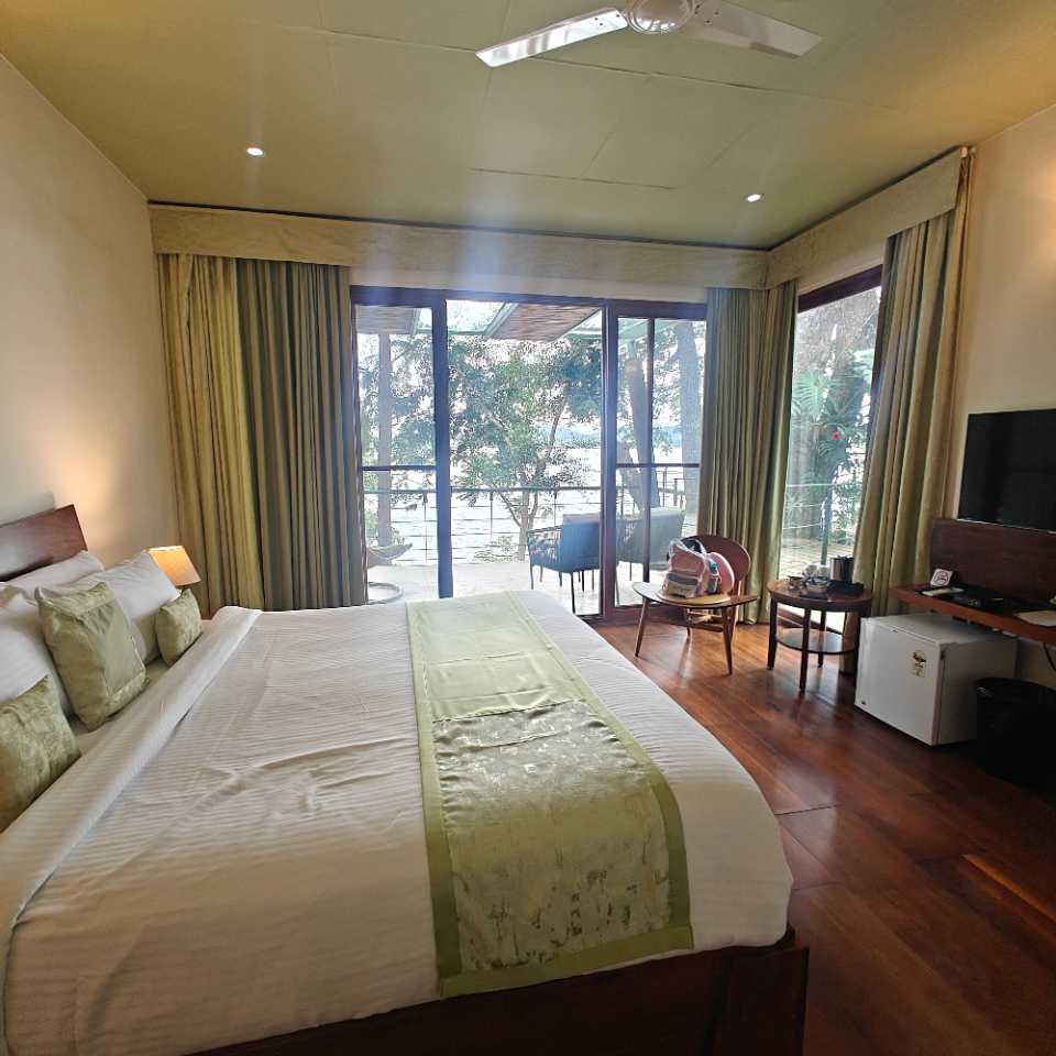 "We had a great stay! The resort's riverside location was stunning, but high water levels limited access to the grassy areas. Despite this, the setting was perfect for relaxation. The food was excellent, with a good spread and flexible staff at the live counters. Rooms were clean, though some areas showed signs of aging. Our Wooden Deck Tree Room was unique, but the deck felt slightly unstable for multiple people. Overall, a wonderful experience with some room for improvement."