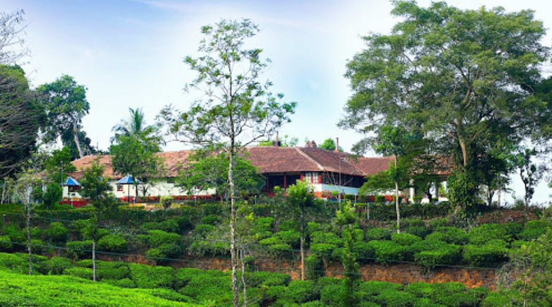 Rooms in a heritage home with a pool, lawn & tea plantation views