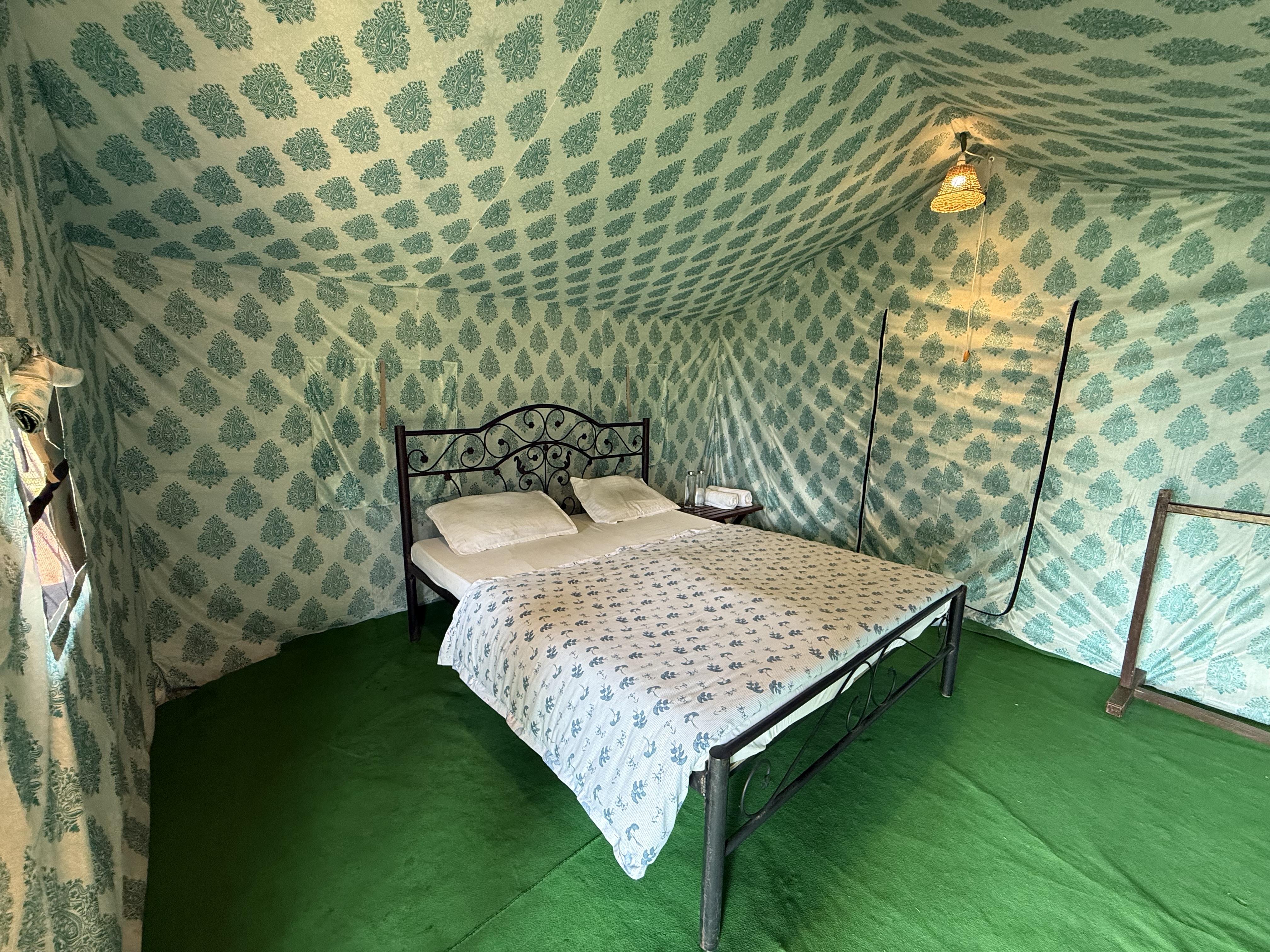 - The tents come with a double bed(with mattress), fresh linen, pillows, blankets/quilts, fresh towels, lighting and a mobile charging point.