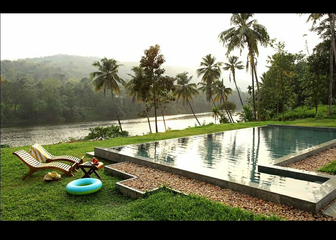 River-side villa with colonial interiors, lawn & pool