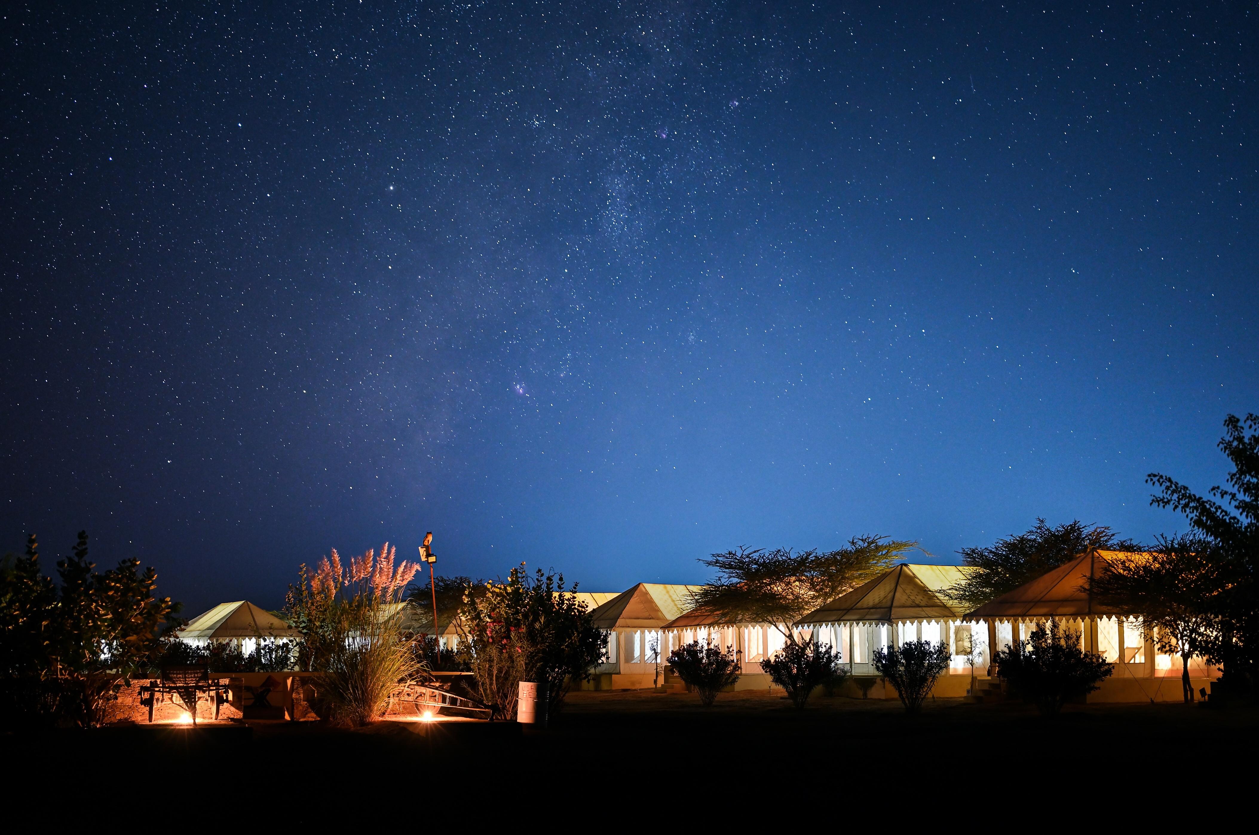 Stay in the heart of the Thar Desert at a Rajputana camp with private dunes, cultural nights & candlelight dinners. More