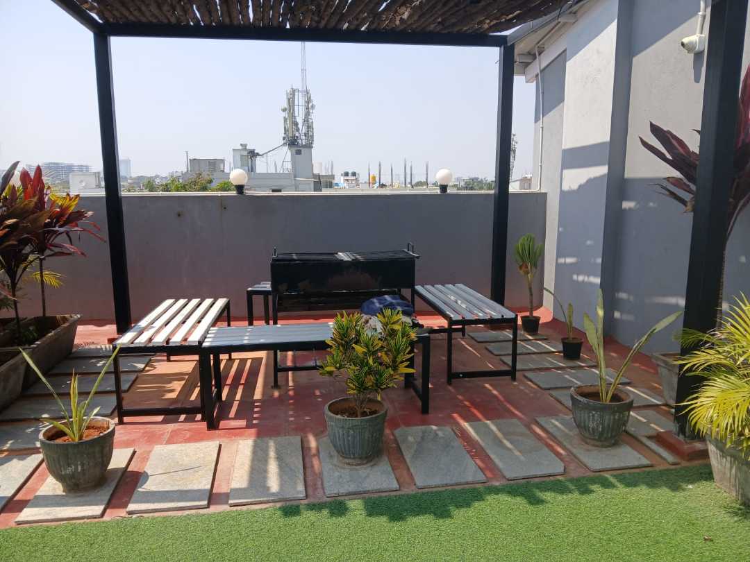 The place is near the hospital, and a lot of options are available for eateries.market is close by, also have public transport buses as you get out of the premises. The terrace looks nice and beautiful, with a common open kitchen. Decent and well decorated place