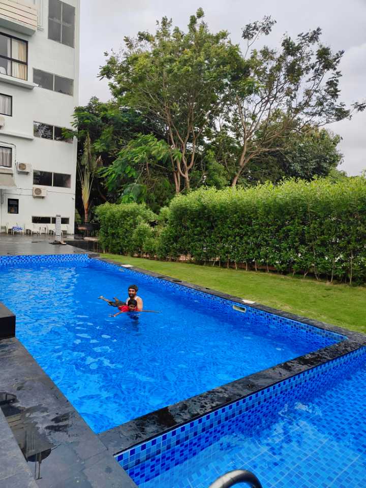 The place was quite calm and pleasant all around. The rooms were tidy and ideal for a family stay. The amenities like gym and pool were available but minimal. The wifi connectivity was quite poor. The service staff were quite supportive...Ms.Tutuki at the front desk was helpful, Gangadhar in the restaurant prepared paneer biryani which was awesome 👌, Chandru was friendly and was at help. Hot water was not available in the taps ....later I found out they were depending upon solar heater and the weather was rainy and cloudy during our stay. Otherwise OK for a lazy stay out for a day or two. Make my trip made a big mess with the booking ....entering as only 1 member for a twin bed executive room. Luckily the hotel staff were understanding and supportive to help the booking error.