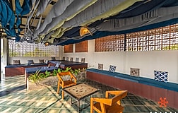 Stay near Alappuzha Beach at a hostel featuring a sea-view rooftop, colourful interiors & a cafe. More